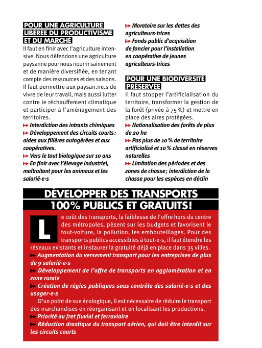 Dans cette masse de mesures communistes assez absurdes à mon sens, et qui veulent se mêler de tout, interdire tout, nationaliser tout, je ne retiens que la proposition qui consiste à « En finir avec l’élevage industriel, maltraitant pour les animaux ». Il aurait été mieux de dire concrètement comment le faire, mais c’est déjà un bon point…